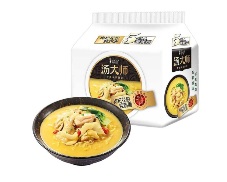 汤大师系列方便面,枸杞花胶(鱼肚)炖鸡口味。其风味以浓郁醇厚的鸡汤为中心,强调浓郁正宗的“大师级”汤底。