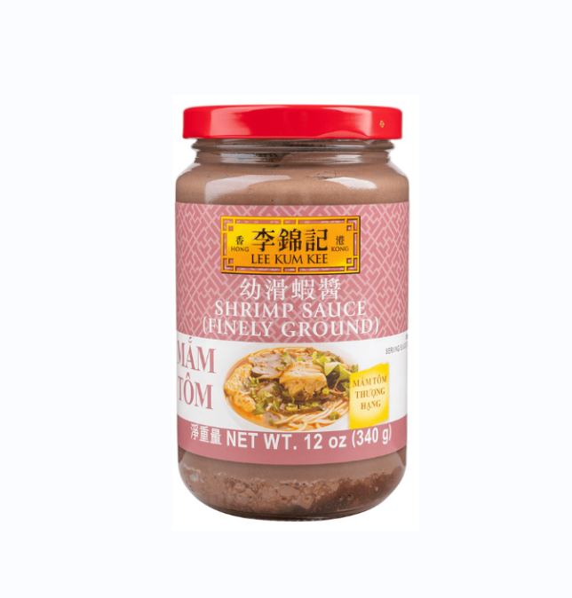 李锦记虾酱(细磨)。这是一种浓稠、辛辣、芳香的调味品,由发酵的新鲜银虾和盐制成。它广泛用于中国和东南亚菜肴中,在越南语中被称为“Mắm Tôm”。