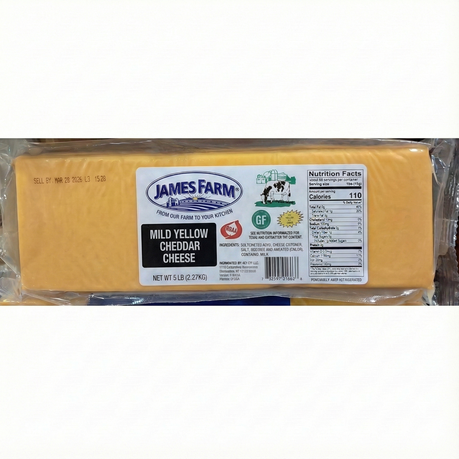 詹姆斯农场淡黄切达干酪质地柔滑,口感温和醇厚,非常适合日常使用。这款块状干酪既适合家庭厨房,也适合餐饮服务场所,可以轻松切片、切丝或融化,用于制作各种菜肴。