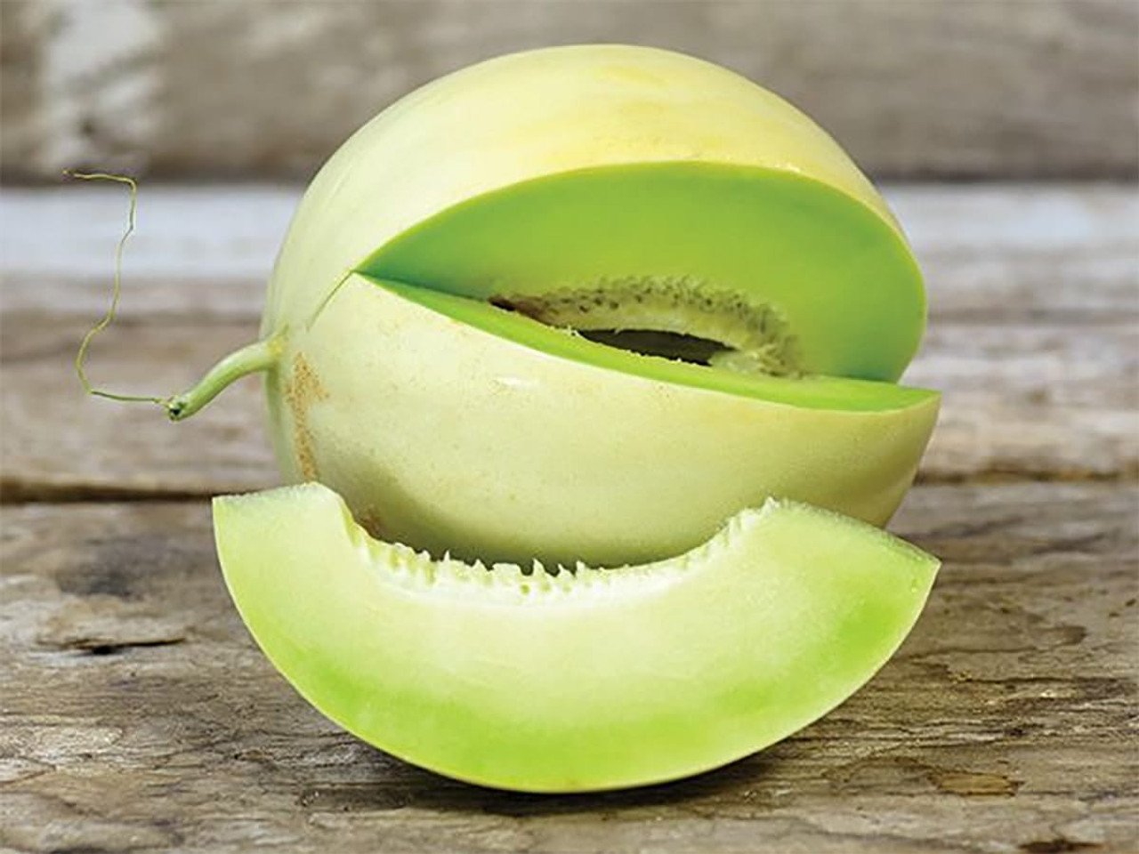 Honeydew melon usually has a smooth rind that is light yellow or pale green. Its flesh is light green or orange, with a delicate, juicy texture and a sweet, refreshing flavor. It is rich in vitamin C, potassium, and water, making it a hydrating and nutritious summer fruit.