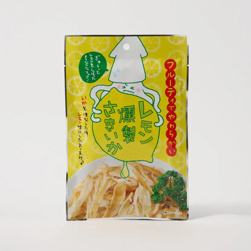 Tender, smoky dried squid with a surprising, bright, and zesty burst of lemon flavor.