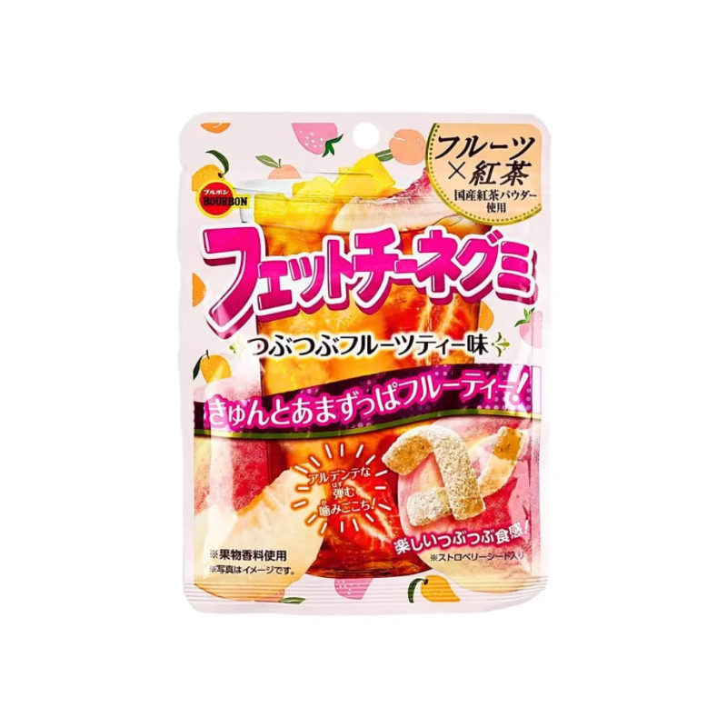 精致芳香的咀嚼片!这些丝带状软糖融合了经典咀嚼片的甜味、芬芳和舒缓的混合水果茶风味。