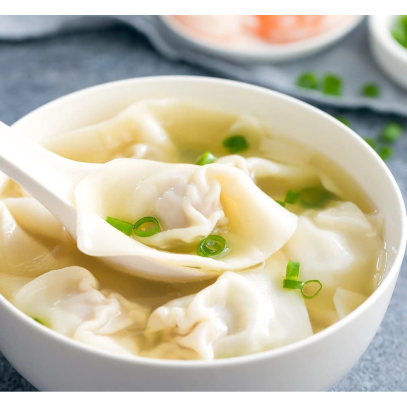 Wontons are thin-skinned dumplings typically filled with fresh shrimp and pork, served in a light, sweet broth
